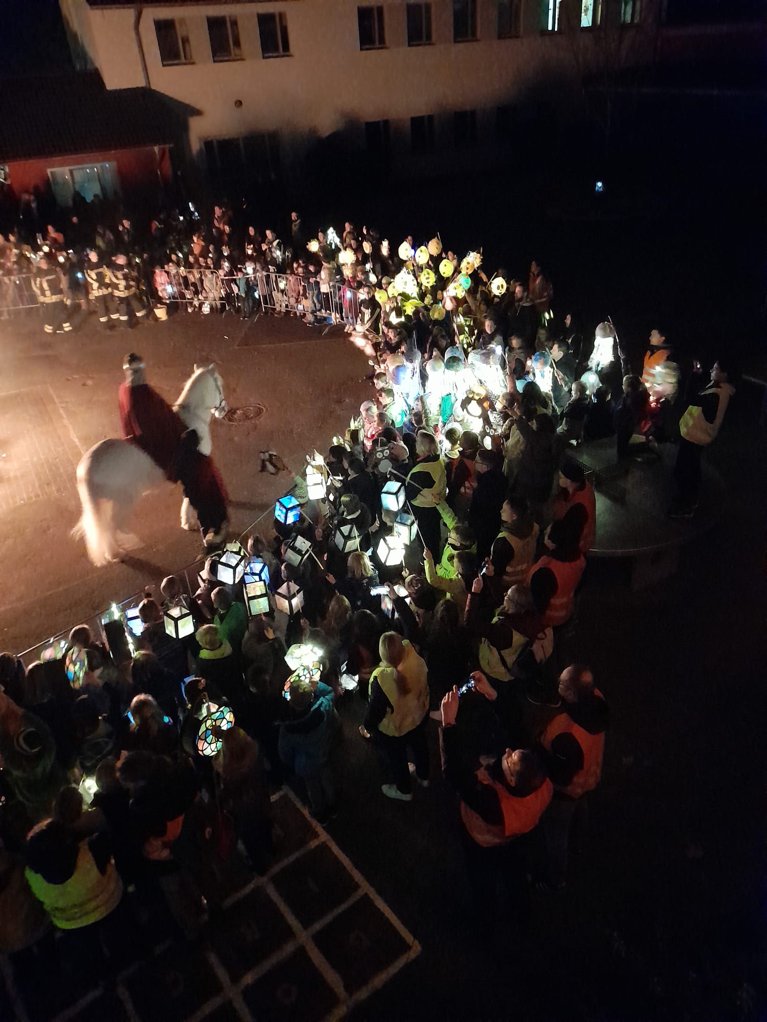 Ein ganz besonderer Dank gilt dem Förderverein, der dieses Fest mit seinem engagierten Einsatz ermöglicht hat. Der Schulhof war mit Lichterketten festlich geschmückt und selbstverständlich gab es für alle Würstchen, Punsch und Weckmänner.