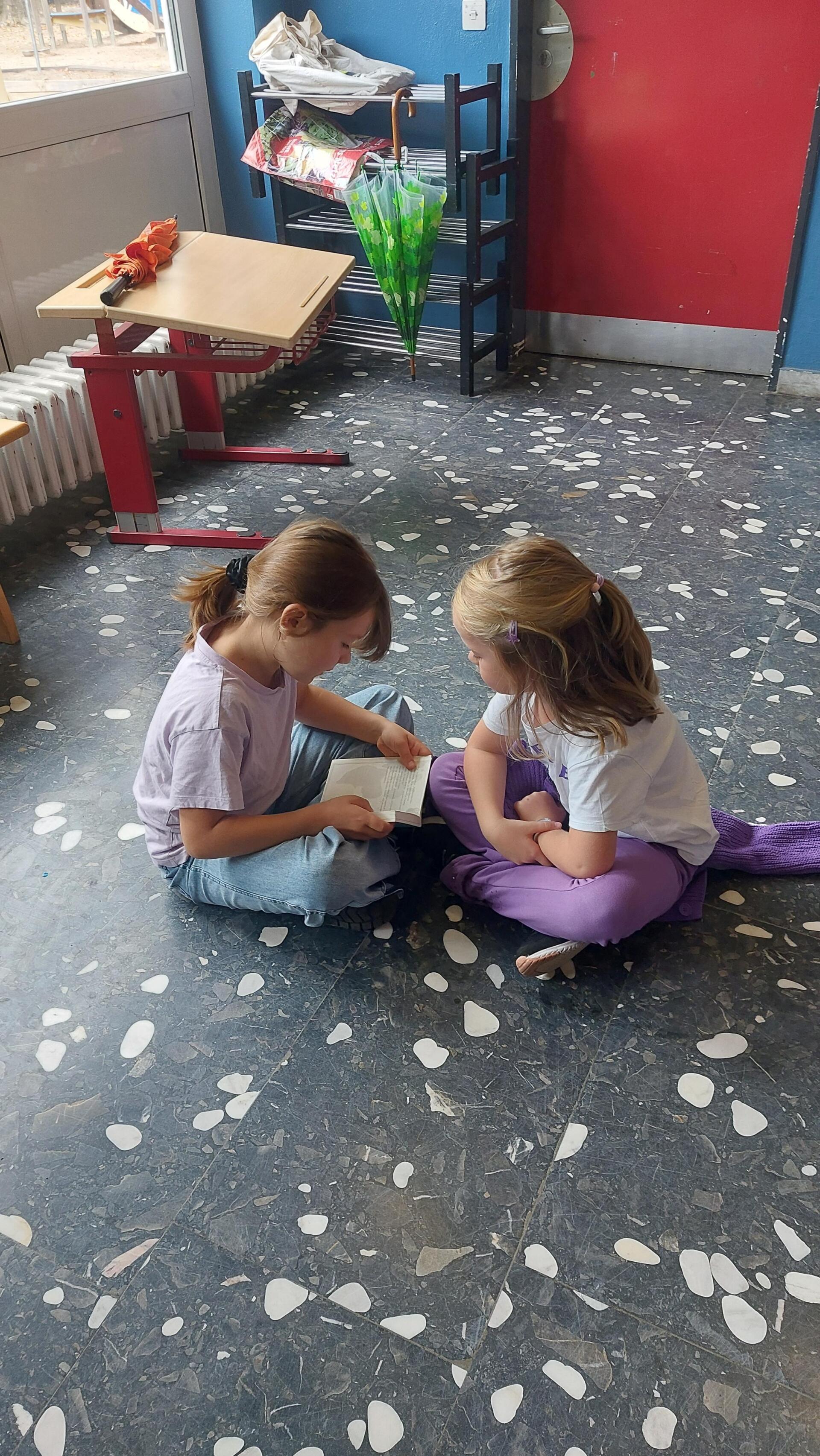Unsere Igelkinder waren zu Besuch in der Delfinklasse. Nach einem gemeinsamen Frühstück wurde unseren Schulanfängern von ihren Paten vorgelesen. Da wurde es so richtig gemütlich. Alle waren ganz glücklich - was auf den Bildern gut zu erkennen ist.